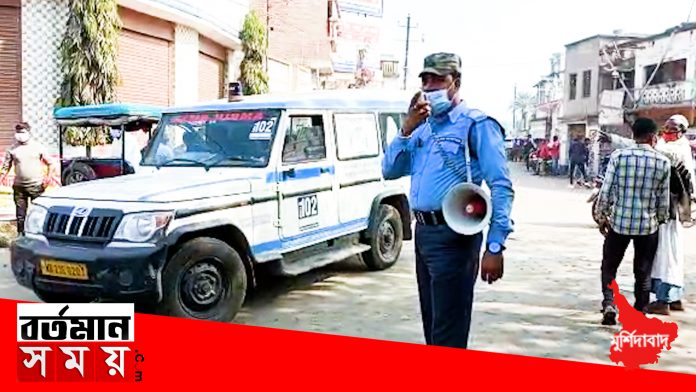 আংশিক লকডাউন সফল করতে মুর্শিদাবাদের বড়ঞা ব্লকে পুলিশের কড়া পদক্ষেপ
