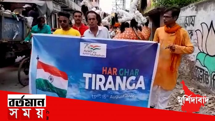 এক বিশাল শোভাযাত্রা আজাদী কা অমৃত মহোৎসব ,৭৫ বছর দেশ স্বাধীনতা পূর্তি উপলক্ষে বিজেপি জেলা কার্যালয় থেকে শ্যামাপ্রসাদ মুখার্জির পাদদেশ পর্যন্ত এক বিশাল শোভাযাত্রা শহর পরিক্রমা করে। গত ৯ই আগস্ট থেকে ১৫ ই আগস্ট নরেন্দ্র মোদিজি ,যে উৎসব পালন করতে বলেছেন গতকাল থেকে তার শুভ সূচনা হয়েছে। আজ মুর্শিদাবাদের বুকে ৭৫ বছর পূর্তি উপলক্ষে ৭৫ ফুট জাতীয় পতাকা নিয়ে এক বর্ণাঢ্য শোভাযাত্রা এই বহরমপুর শহরে বের হয়। এই শোভাযাত্রা থেকে বিজেপি নেত্রী অনামিকা ঘোষ বলেন যে মুর্শিদাবাদ বলতে আমরা লক্ষ্য করেছি সি এর সময় ট্রেন পুড়িয়ে দেওয়া এবং আমরা লক্ষ্য করেছি মুর্শিদাবাদ এর বিভিন্ন জায়গায় আজও হিন্দুস্তান পাকিস্তানের ক্রিকেট ম্যাচ হলে পাকিস্তান জিতে গেলে ফটকা ফোটানো হয়। তিনি বলেন আমরা এই শোভাযাত্রার মাধ্যমে বার্তা দিতে চাইছি মুর্শিদাবাদ ভারত মায়ের সুসন্তান এবং এই মুর্শিদাবাদের রাষ্ট্র বাদী চেতনা প্রতিটি মানুষের অন্তরে আছে এই শোভাযাত্রা তারই প্রতিকৃতি বলে তিনি জানান।