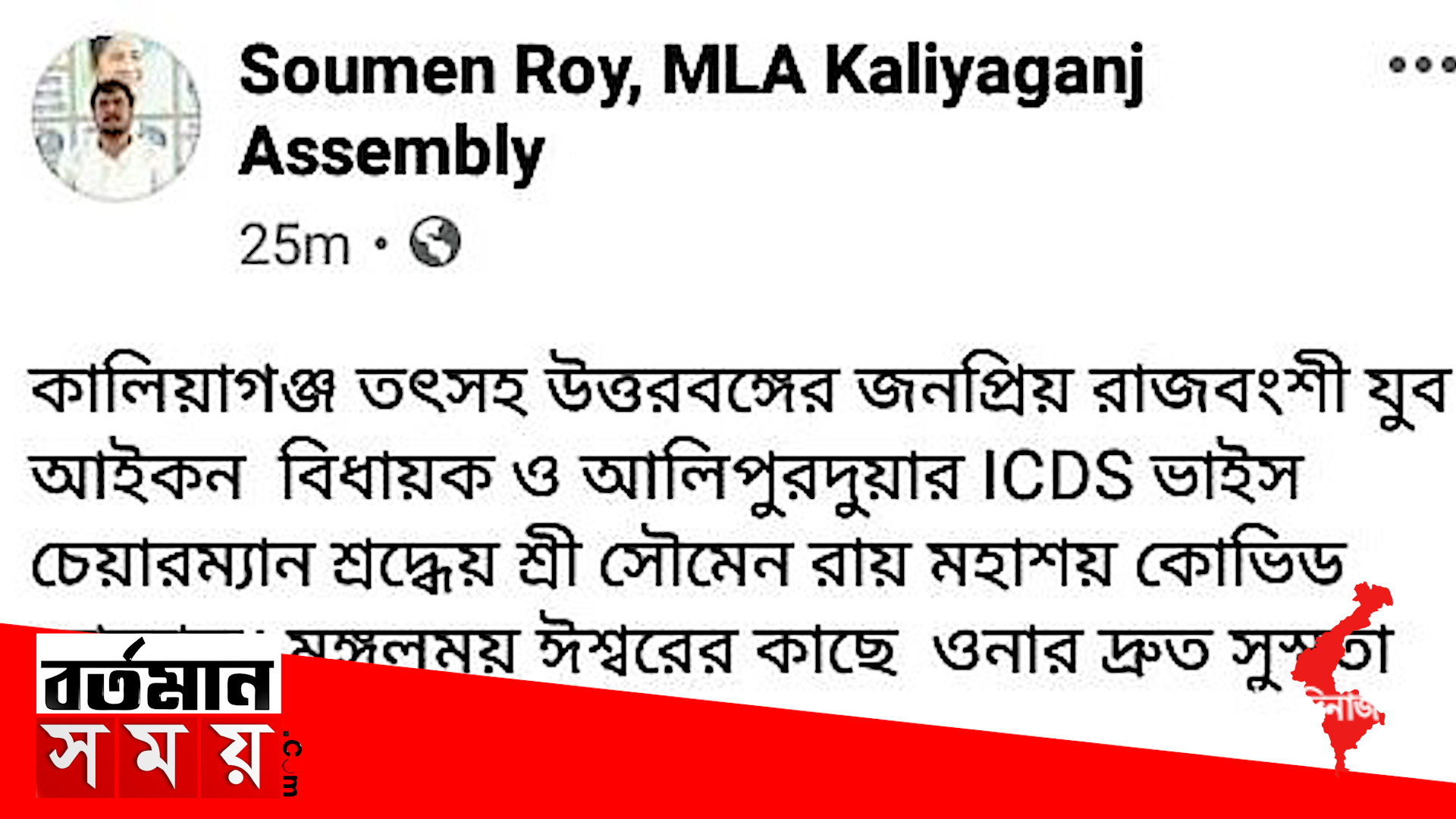 করোনাতে আক্রান্ত হলেন কালিয়াগঞ্জ এর বিধায়ক সৌমেন রায় ।