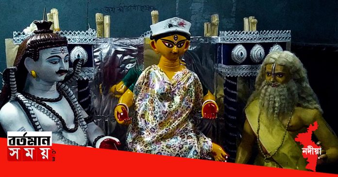 নদীয়া:- বাসন্তী পুজোর আজ মহাসপ্তমী। আগামীকাল অষ্টমী তিথিতে অন্নপূর্ণা পূজিত হন। শান্তিপুর গোপালপুরের মৃৎশিল্পী সৌরভ সাহা এবছরই প্রথম সুদূর বালিগঞ্জ তাকে একটি অর্ডার পান। দেবীকে পৌঁছে দিয়ে আসতে, শিল্পী প্রখর রোদ এড়িয়ে সন্ধ্যায় রওনা দেন শান্তিপুর থেকে শিয়ালদার উদ্দেশ্যে। তিনি বলেন পুজোর স্থান জানা না থাকলেও অর্ডার দাতা অভিজিৎ পালের সাথে ফোনে যোগাযোগ হয়েছে তিনি শিয়ালদা দেবী প্রতিমা তুলে নেবেন অপর একটি ট্রেনে।