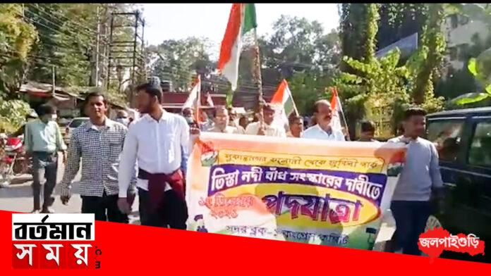 তিস্তা ও করোলা বাঁধের সংস্কারের দাবিতে পদ যাত্রায় সামিল হলো জেলা কংগ্রেস।
