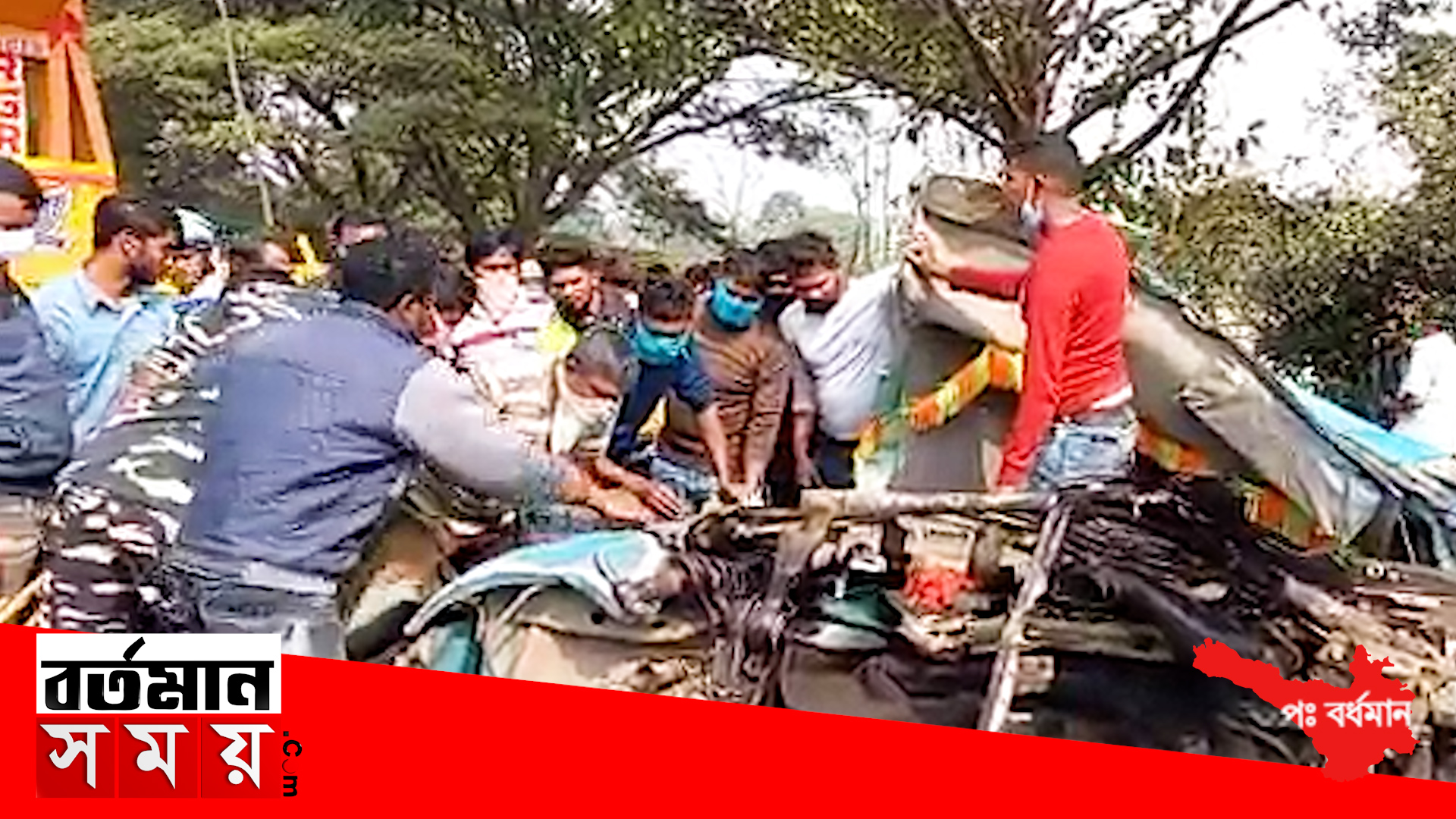 হুগলি হরিপাল থানার মহিষ টিকরীকাছে দুই নম্বর জাতীয় সড়কে নিয়ন্ত্রণ হারিয়ে একটি দাঁড়িয়ে থাকা পাথর বোঝাই ট্রাকের পেছনে ডাম্পারের ধাক্কায় । ঘটনায় ডাম্পারের খালাসী ও চালকের মৃত্যু হয়। এর ফলে বেশ কিছুক্ষণ বর্ধমান থেকে হাওড়া যাবার দুর্গাপুরের দুর্গাপুর হাইওয়ে বন্ধ ছিল ঘটনাস্থলে হরিপাল থানার পুলিশ । মৃতদেহটি উদ্ধার করে থানায় নিয়ে যায়। পরিবারের লোকজন কে খবর দেয়া হয়েছে বলে জানা গেছে।