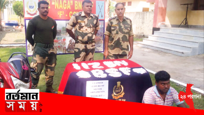 ফের একবার আন্তর্জাতিক পাচারের চেষ্টা রুখে দিল বিএসএফ। বসিরহাট মহকুমার স্বরূপনগর থানার ভারত-বাংলাদেশ হাকিমপুর সীমান্তের ঘটনা। এদিন ভোর রাতে সীমান্তে টহলের সময় সীমান্তের দিকে যাওয়া এক বাইক আরোহীকে সন্দেহের বশে জিজ্ঞাসাবাদের জন্য আটক করে বিএসএফের ১১২ নম্বর ব্যাটেলিয়ানের জওয়ানরা। কথায় অসঙ্গতি পাওয়ায় তল্লাশি চালাতেই চক্ষু চড়কগাছ বিএসএফের। ওই বাইক আরোহীর বাইকের চাকা থেকে উদ্ধার হল ১০ কিলো ৯৫০ গ্রাম রুপোর বল। বিএসএফ সূত্রে জানা গিয়েছে এর বাজার দর ৫ লক্ষ ১৯ হাজার ২৫২ টাকা। এগুলি এ দেশ থেকে বাংলাদেশে পাচারের উদ্দেশ্যে নিয়ে যাওয়া হচ্ছিল বলে প্রাথমিক অনুমান বিএসএফের। ধৃতের নাম মোজাফ্ফর দফাদার, বাড়ি পার্শ্ববর্তী দহরকন্দা গ্রামে। উদ্ধার হওয়া রুপোর গয়না ও বাইক তেঁতুলিয়া শুল্ক দফতর হাতে তুলে দেওয়া হয়েছে। অন্যদিকে ঐ পাচারকারীকে স্বরূপনগর থানার পুলিশের হাতে তুলে দিয়েছে বিএসএফ। ধৃত পাচারকারীকে বসিরহাট মহকুমা আদালতে তোলা হচ্ছে।