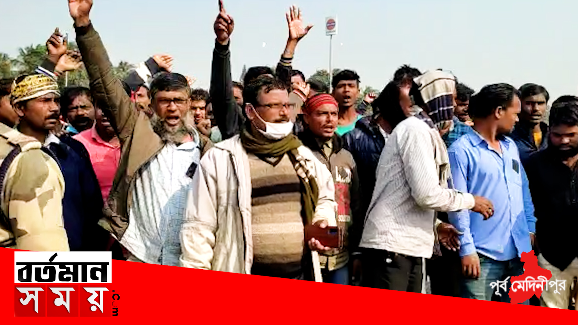 হলদিয়া রিফাইনারি গেটের সামনে তৃণমূল শ্রমিক সংগঠনের বিক্ষোভ।