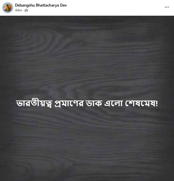 এবার দেবাংশু ভট্টাচার্যকে SIR-এর শুনানির নোটিস। ভারতীয়ত্ব প্রমাণের ডাক এল শেষমেষ, সমাজমাধ্যমে দেবাংশু ভট্টাচার্য। পরিবারের ৪ জনকে শুনানির নোটিস দেওয়া হয়েছে। নামের বানান সঠিক আছে, কি কারণে ডাকল জানা নেই। যাঁরা তৃণমূল সমর্থক তাঁদের ও তাঁদের পরিবারের সকলকে নোটিস দেওয়া হচ্ছে। এই নোটিস পাঠানোর পিছনে বিজেপির হাত রয়েছে’, নোটিস পেয়ে সোশাল মিডিয়ায় পোস্ট দেবাংশু ভট্টাচার্যের।