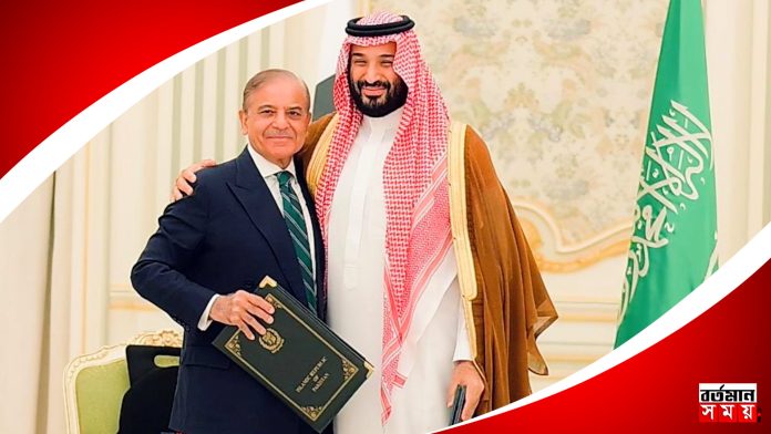 পাকিস্তানের প্রধানমন্ত্রী শেহবাজ শরিফ রিয়াধ সফরে গিয়েছেন। সেখানে সৌদির যুবরাজ মহম্মদ বিন সলমনের সঙ্গে দ্বিপাক্ষিক বৈঠকও হয় তাঁর। আর তার পরই সামরিক চুক্তি স্বাক্ষরের ঘোষণা হয়। দুই দেশের তরফে যৌথ বিবৃতি জারি করেবলা হয়, ‘উপমহাদেশের শান্তি ও নিরাপত্তা রক্ষার্থে প্রতিশ্রুতিবদ্ধ দুই দেশ। পারস্পরিক সহযোগিতা বৃদ্ধিতেই এই চুক্তি, যাতে একসঙ্গে আগ্রাসনের মোকাবিলা করা যায়’।